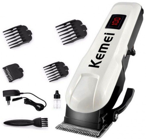 Kemei KM-809A Digital Electric Hair Clipper & Rechargeable Beard Trimmer for Men – Professional Cordless Grooming Machine (White)